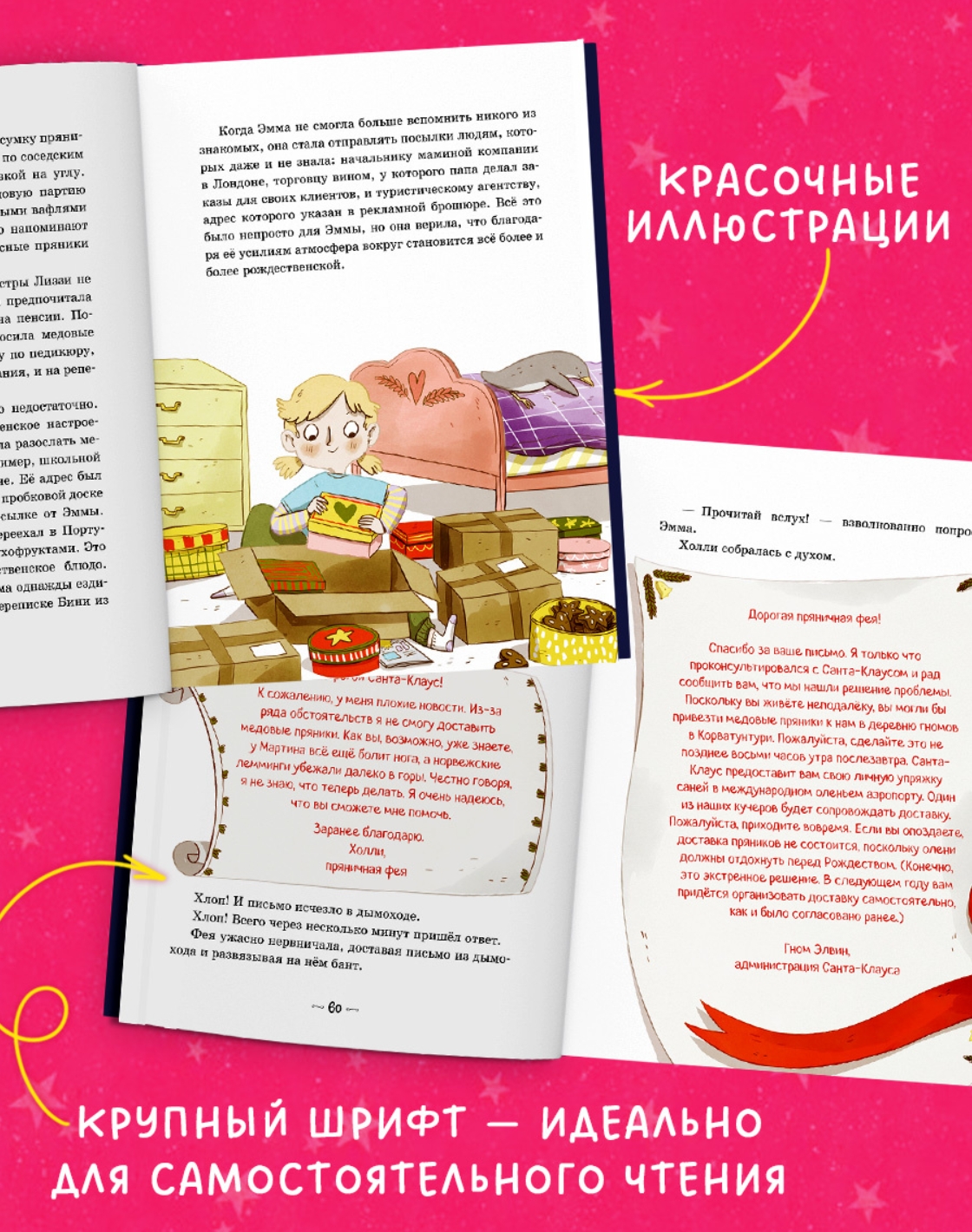 «Как спасти Рождество?» — зимняя история для всей семьи с праздничной атмосферой. Благодаря крупному шрифту, плотной бумаге и красочным иллюстрациям книга прекрасно подойдёт для первого самостоятельного чтения. Это вторая книга серии «Секрет пряничной феи», которую представляет издательство Clever.