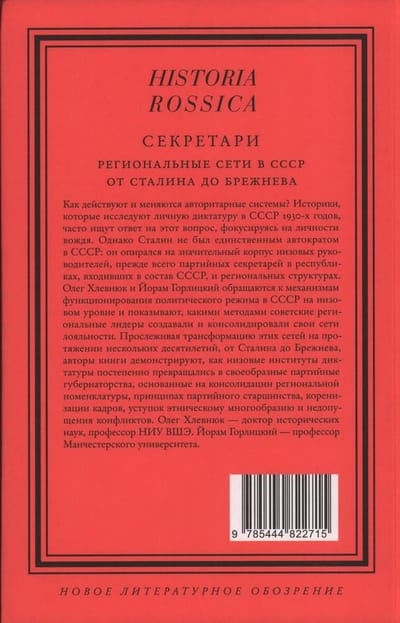 Как действуют и меняются авторитарные системы? Историки, которые исследуют личную диктатуру в СССР 1930 х годов, часто ищут ответ на этот вопрос, фокусируясь на личности вождя. Однако Сталин не был единственным автократом в СССР: он опирался на значительный корпус низовых руководителей, прежде всего партийных секретарей в республиках, входивших в состав СССР, и региональных структурах. Олег Хлевнюк и Йорам Горлицкий обращаются к механизмам функционирования политического режима в СССР на низовом уровне и показывают, какими методами советские региональные лидеры создавали и консолидировали свои сети лояльности. Прослеживая трансформацию этих сетей на протяжении нескольких десятилетий, от Сталина до Брежнева, авторы книги демонстрируют, как низовые институты диктатуры постепенно превращались в своеобразные партийные губернаторства, основанные на консолидации региональной номенклатуры, принципах партийного старшинства, коренизации кадров, уступок этническому многообразию и недопущения конфликтов. Олег Хлевнюк — доктор исторических наук, профессор НИУ ВШЭ. Йорам Горлицкий — профессор Манчестерского университета.