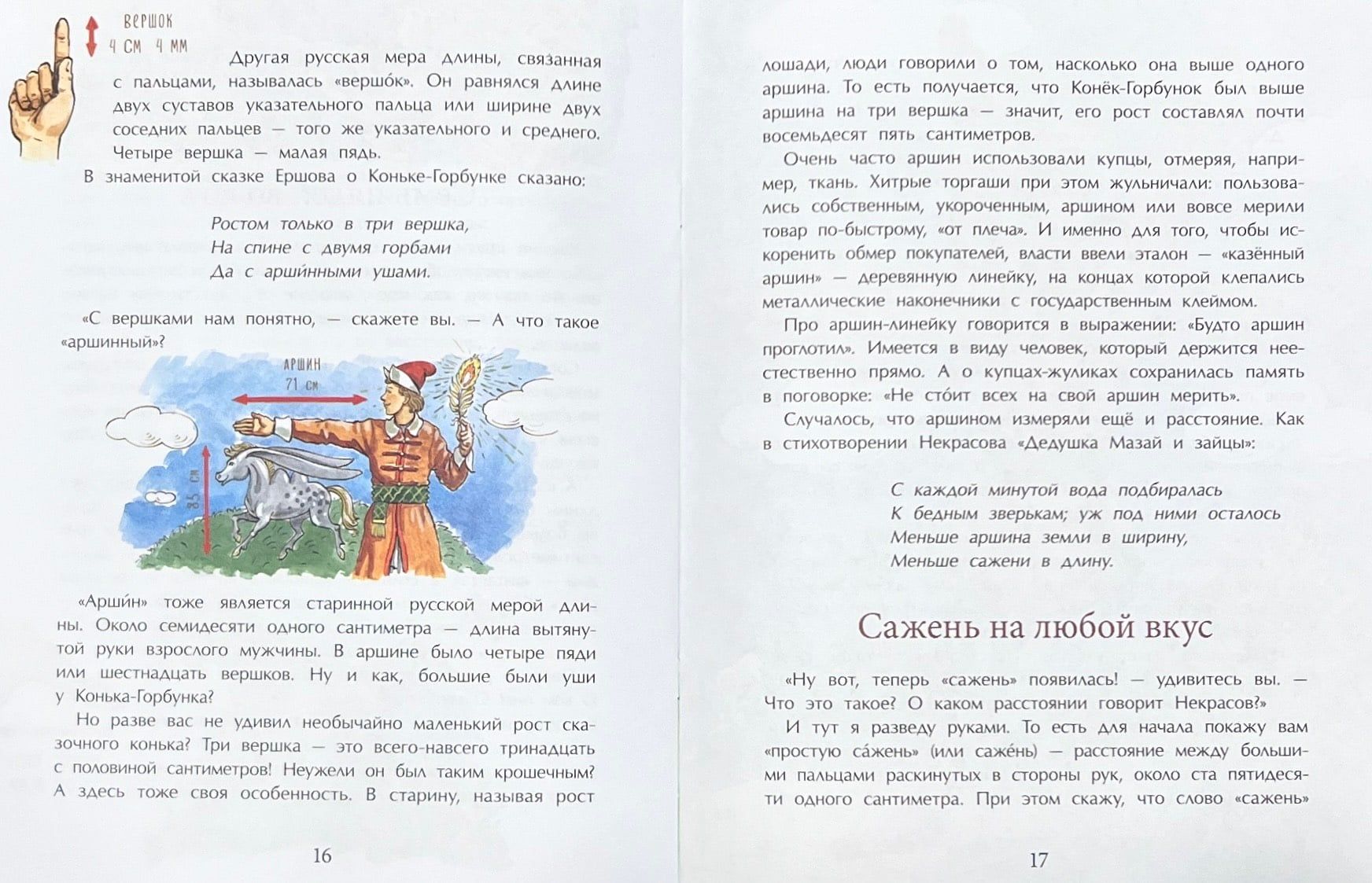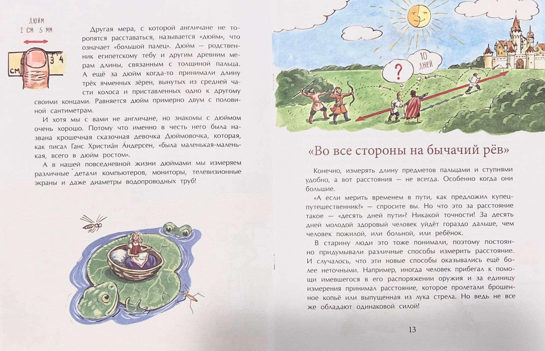 Сколько это – верста, сажень, аршин, «семь пядей во лбу»? Футы, ярды, дюймы, почему англичане используют не такие меры длины, как мы? Какого роста были Дюймовочка и Конек-Горбунок? Автор книги поможет найти ответы на эти вопросы и научит измерять длину предметов пальцами и ступнями, локтями, железными сапогами, брошенными копьями, выпущенными стрелами, а также с помощью такого уникального инструмента, как «бычачий рёв».