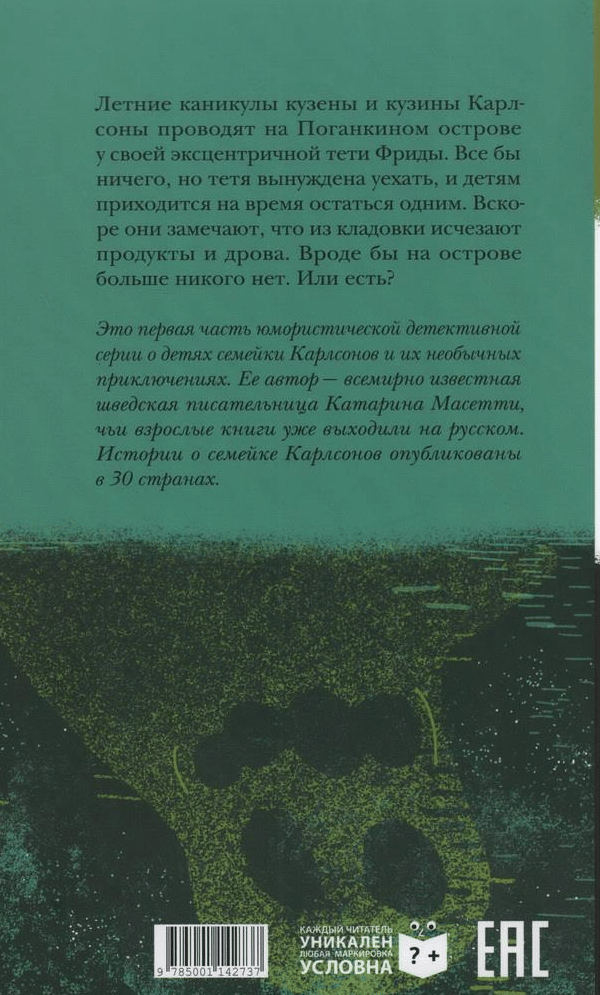 Это первая часть юмористической детективной серии о детях семейки Карлсонов и их необычных приключениях. Ее автор - всемирно известная шведская писательница Катарина Масетти, чьи взрослые книги уже выходили на русском. Истории о семейке Карлсонов опубликованы в 30 странах.