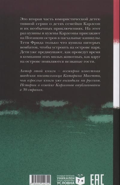 Автор этой книги - всемирно известная шведская писательница Катарина Масетти, чьи взрослые книги уже выходили на русском. Истории о семейке Карлсонов опубликованы в 30 странах.