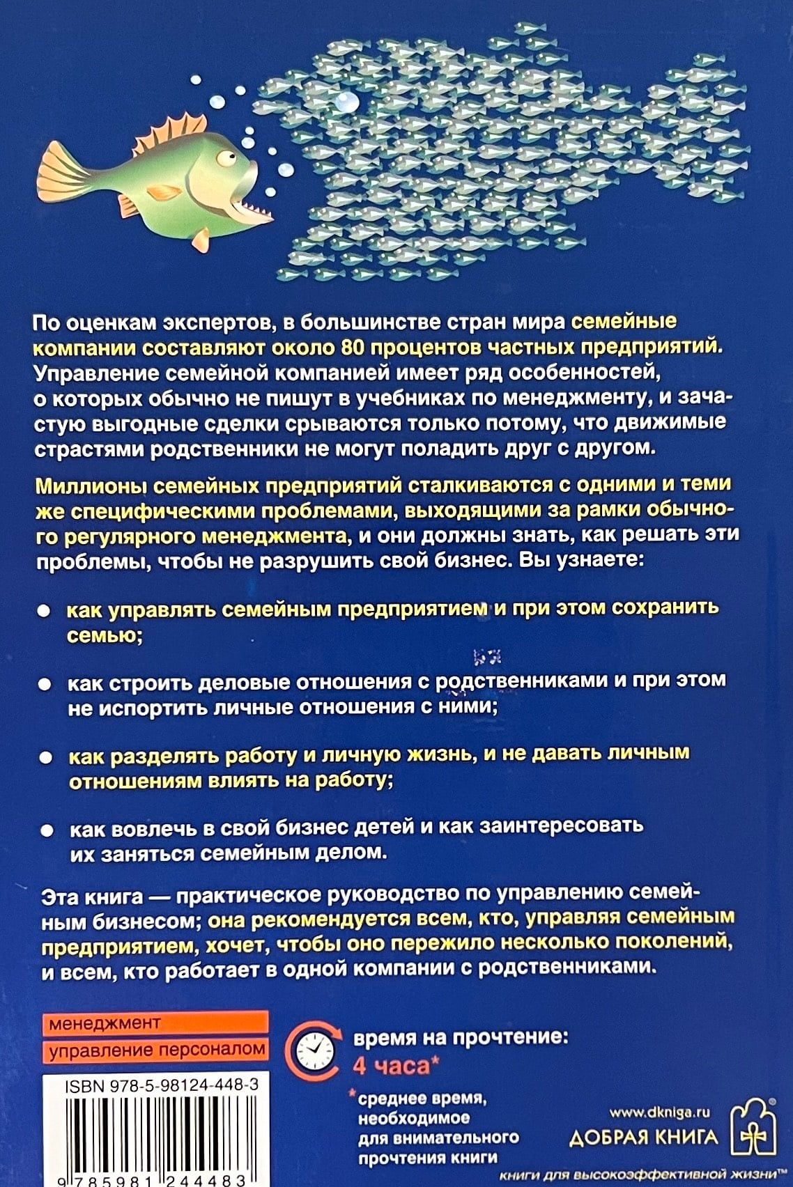 По оценкам экспертов, в большинстве стран мира семейные компании состав­ляют около 80 процентов частных предприятий. Управление семейной компани­ей имеет ряд особенностей, о которых обычно не пишут в учебниках по менед­жменту, и зачастую выгодные сделки срываются только потому, что движимые страстями родственники не могут поладить друг с другом.