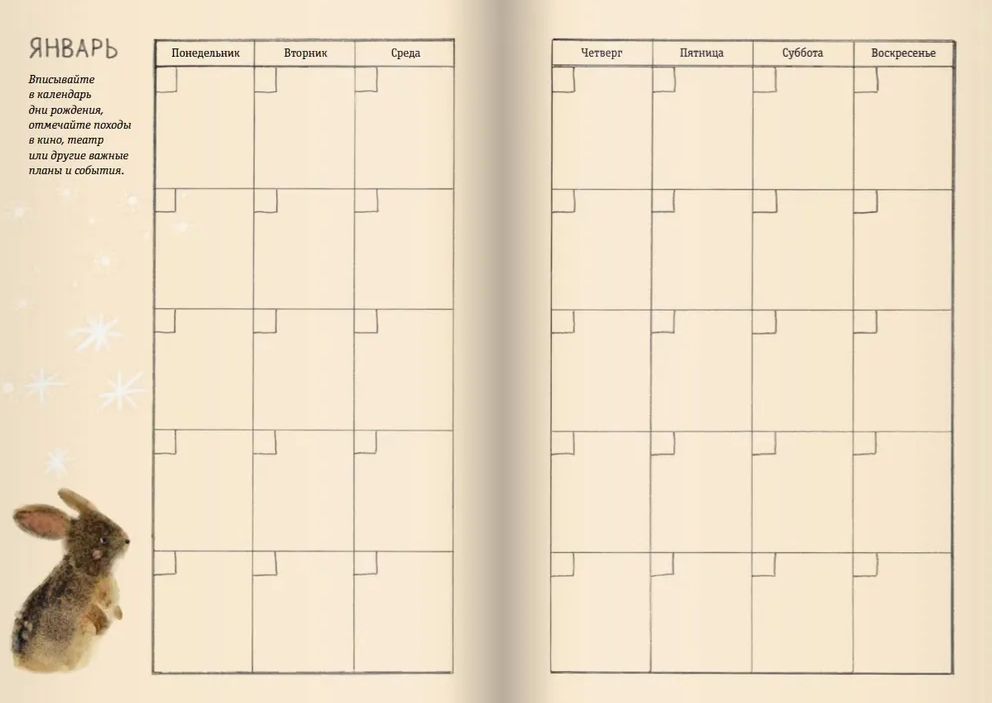 Уютный блокнот для семейных планов с цитатами из любимых стихотворений Михаила Яснова и нежными иллюстрациями Карины Кино. Внутри - игры и задания для семейных вечеров и линованные страницы для записи мыслей и идей. А также капля полезностей - трекеры привычек, чтобы отмечать маленькие победы, и календарь для планирования праздников и других важных событий.