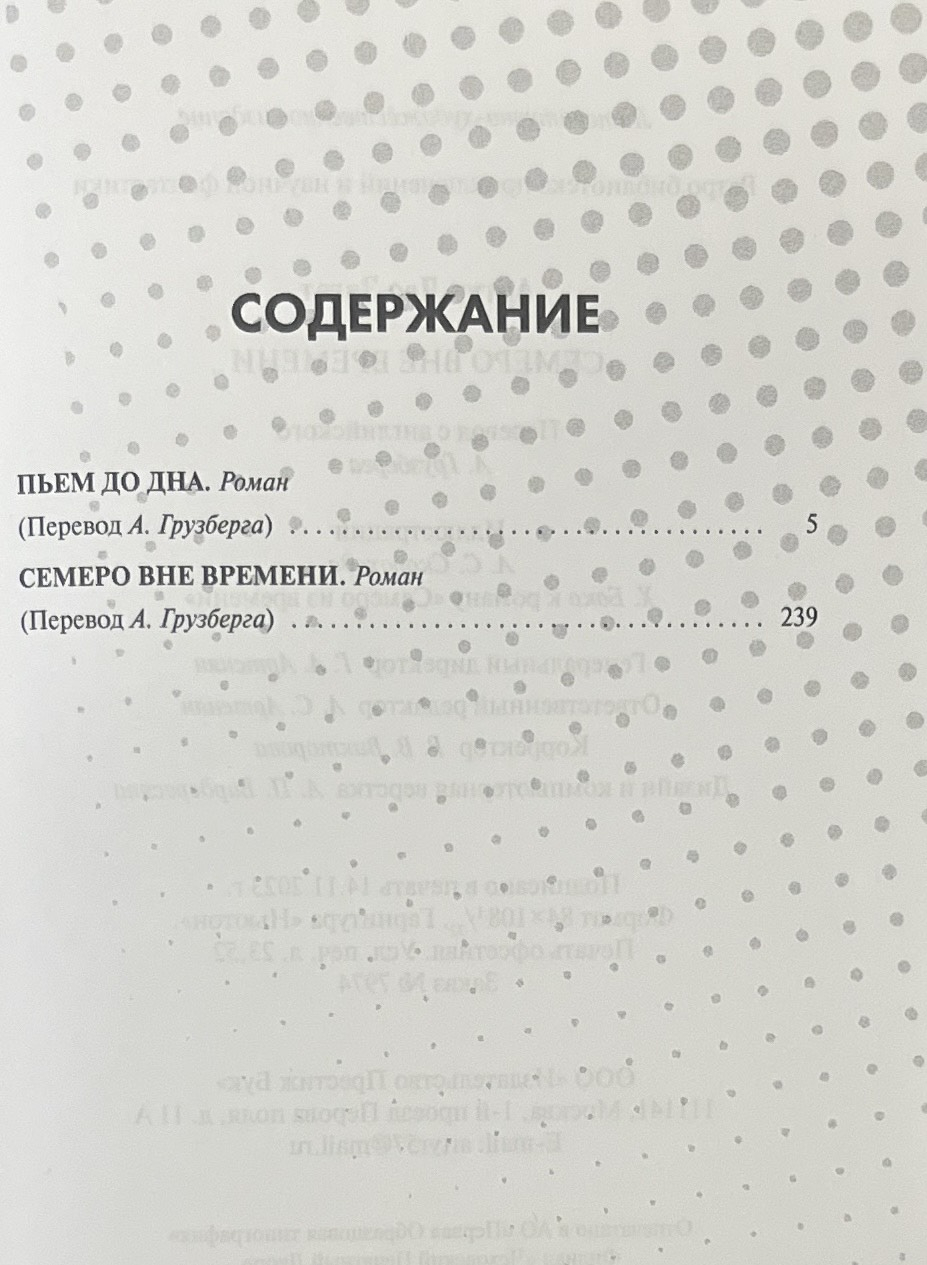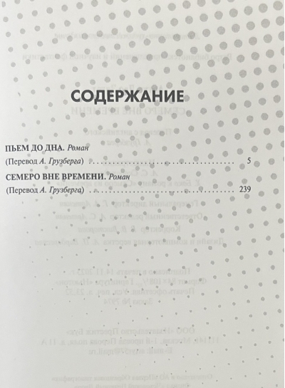 Все произведения автора характеризуются динамичным сюжетом и привлекают внимание читателя неожиданными поворотами повествования. Одинаково интересно читаются и детективные и научно-фантастические произведения. В данный том вошли два романа «Пьем до дна» и «Семеро вне времени».