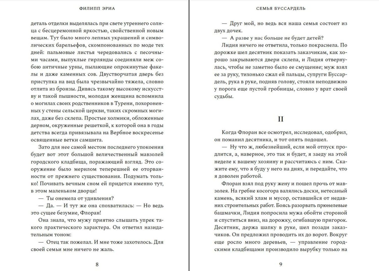 Описывая будни своих героев день за днем, Филипп Эриа щедро расставляет по шкафам скелеты, которые то и дело предъявляет читателю. Буссардели не ангелы — они живые люди. Незаконнорожденные дети, адюльтеры, неприглядные поступки, непонимание и абсолютное равнодушие друг к другу и к человеческим горестям вообще — все это составляет истинную жизнь семейства. Следить за перипетиями судеб героев крайне интересно — именно потому что Эриа, как и его предшественник Бальзак, рисует подлинную человеческую комедию.