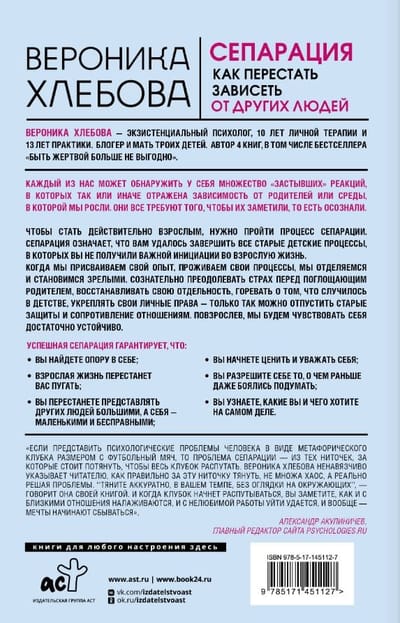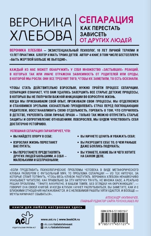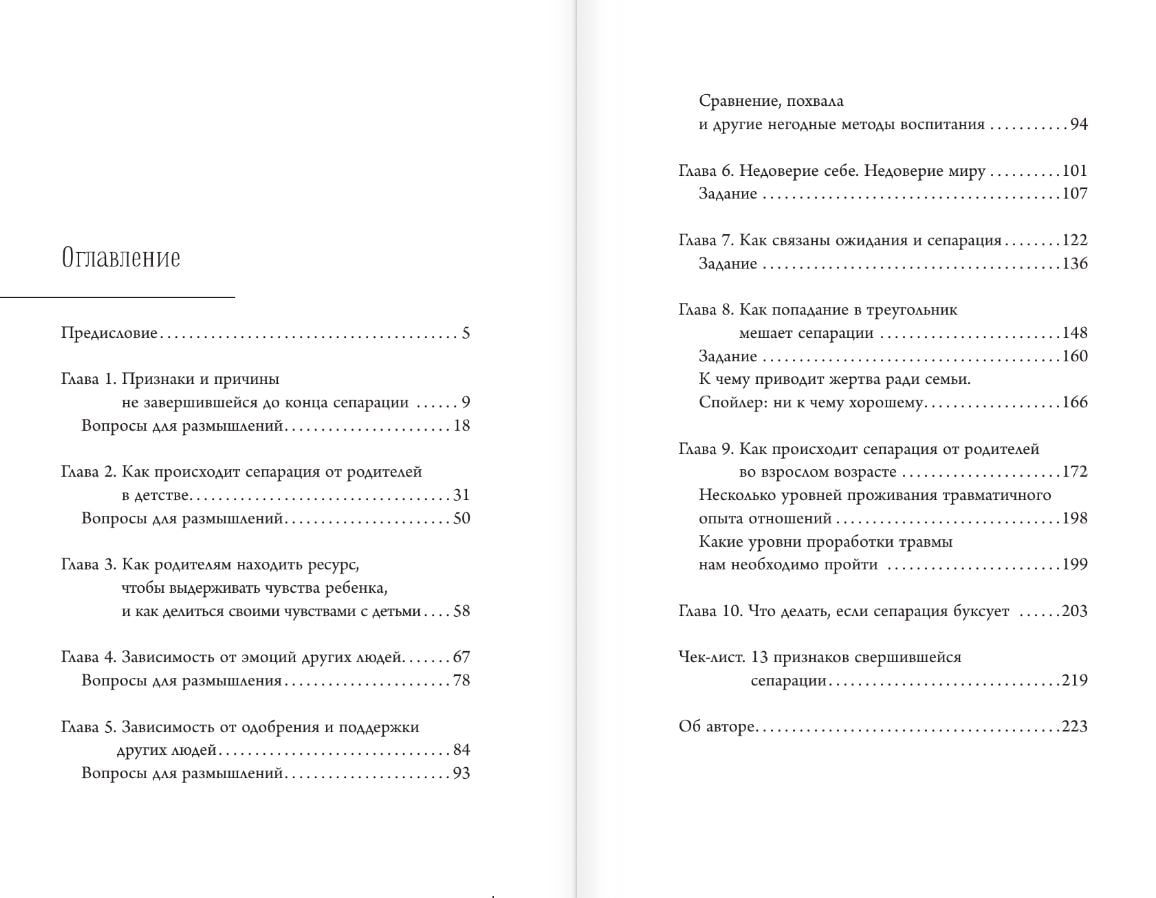 Каждый из нас может обнаружить у себя множество «застывших» реакций, в которых так или иначе отражена зависимость от родителей или среды, в которой мы росли. Они все требуют того, чтобы их заметили, то есть осознали. Чтобы стать действительно взрослым, нужно пройти процесс сепарации. Сепарация означает, что вам удалось завершить все старые детские процессы, в которых вы не получили важной инициации во взрослую жизнь. Когда мы присваиваем свой опыт, проживаем свои процессы, мы отделяемся и становимся зрелыми. Сознательно преодолевать страх перед поглощающим родителем, восстанавливать свою отдельность, горевать о том, что случилось в детстве, укреплять свои личные права — только так можно отпустить старые защиты и сопротивление отношениям. Повзрослев, мы будем чувствовать себя достаточно устойчиво.
