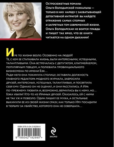 Бэка убили! Кто-то из Ириных друзей. Оказалось, ей с ними не так уж и повезло. Один лишил ее мужа, а остальные выкинули ее из своей жизни сразу, как Иру посадили в тюрьму за убийство, которого она не совершала…