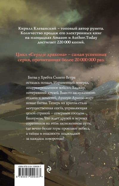 Битва у Хребта Синего Ветра осталась позади. Израненный генерал, полуразгромленное войско, Хаджар, потерявший друзей. Вместо заслуженного отдыха и почестей, Лунную Армию ждут новые битвы. Теперь их врагом стала могущественная секта, управляющая целой страной — северным соседом Балиумом. Что ждет друзей и верных соратников на этом заснеженном пути, где вечно белые горы пронзают небеса, а тайны и опасности поджидают за каждым поворотом?