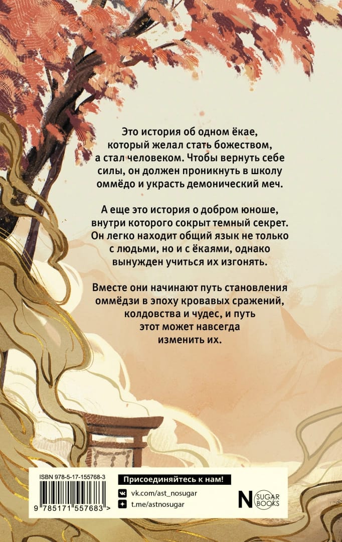 Зачаровывающая магия древней Японии, невероятная притягательность колдунов, демонов и обычных людей, снисхождение и гнев богов - все это в новом увлекательном цикле, основанном на легендах, берущих свое начало у истоков времен. Это история об одном ёкае, который желал стать божеством, а стал человеком. Чтобы вернуть себе силы, он должен проникнуть в школу оммёдо и украсть демонический меч. А еще это история о добром юноше, внутри которого сокрыт темный секрет. Он легко находит общий язык не только с людьми, но и с ёкаями, однако вынужден учиться их изгонять. Вместе они начинают путь становления оммёдзи в эпоху кровавых сражений, колдовства и чудес, и путь этот может навсегда их изменить. Первая книга серии, где только начитается путешествие по удивительному, коварному и чудесному миру, полному тайн, интриг и настоящей мужской дружбы!
