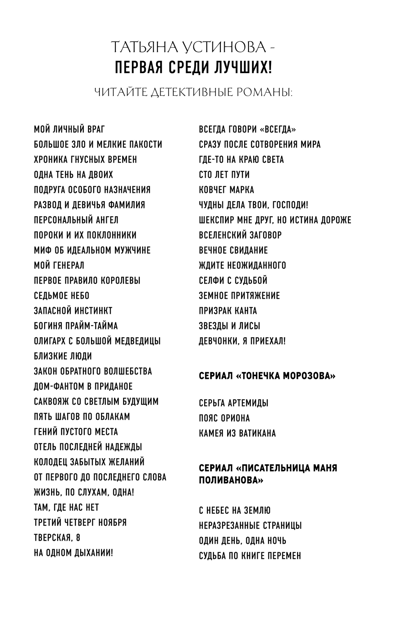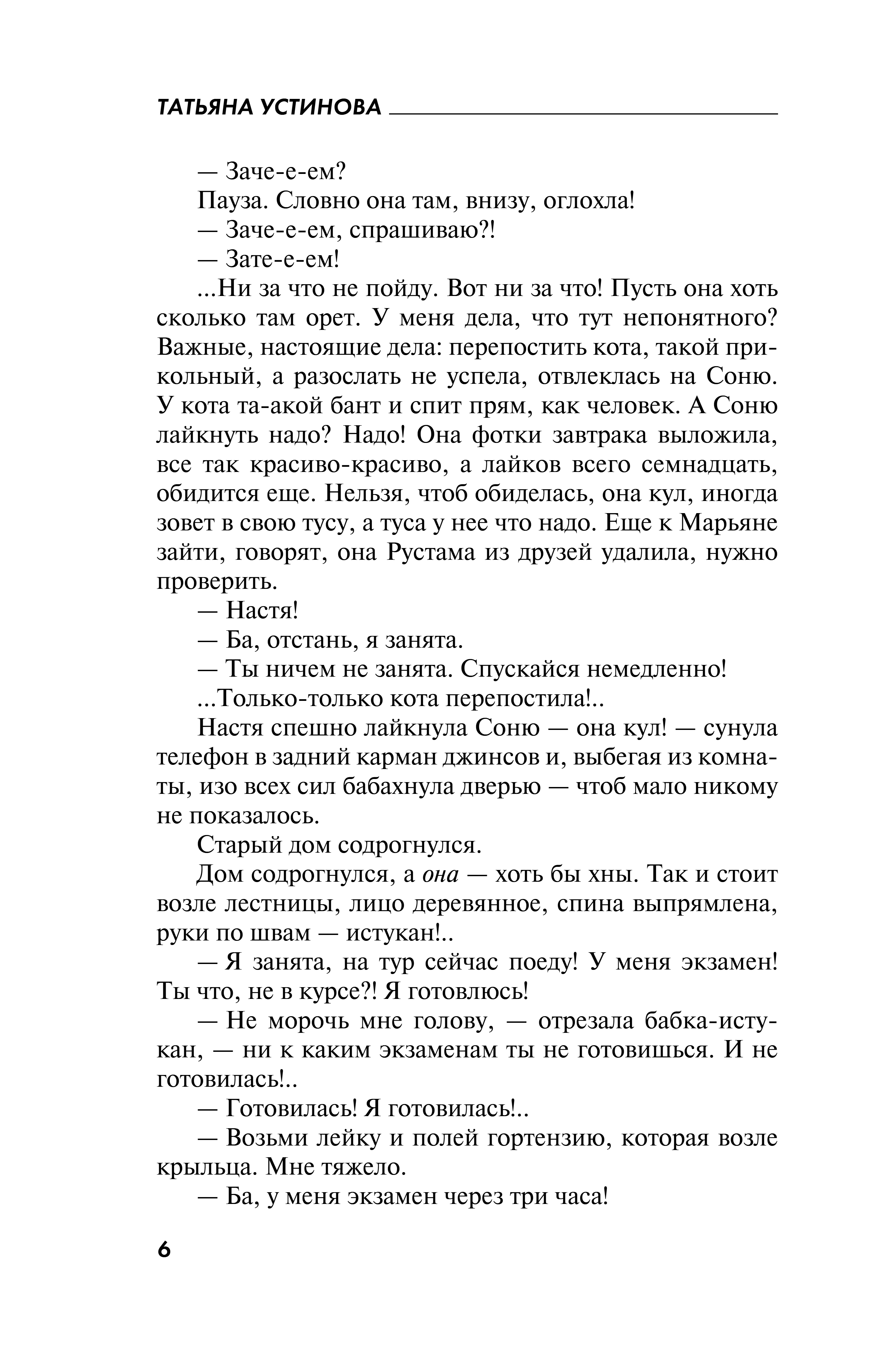 Насте семнадцать, она трепетная и требовательная и к тому же будущая актриса. У нее есть мать, из которой, по мнению дочери, ничего не вышло. Есть еще бабушка Марина Тимофеевна, статная красавица, почему-то ненавидящая Настиного покойного отца — гениального писателя! Но почему?.. За что?.. Что за тайны у матери с бабушкой? В одно прекрасное утро на вступительном туре Насти в театральный происходит ужасное — погибает молодая актриса, звезда сериалов. Настя с приятелем Даней становятся практически свидетелями убийства, возможно, им тоже угрожает опасность. Впрочем, опасность угрожает всей семье, состоящей исключительно из женщин!..