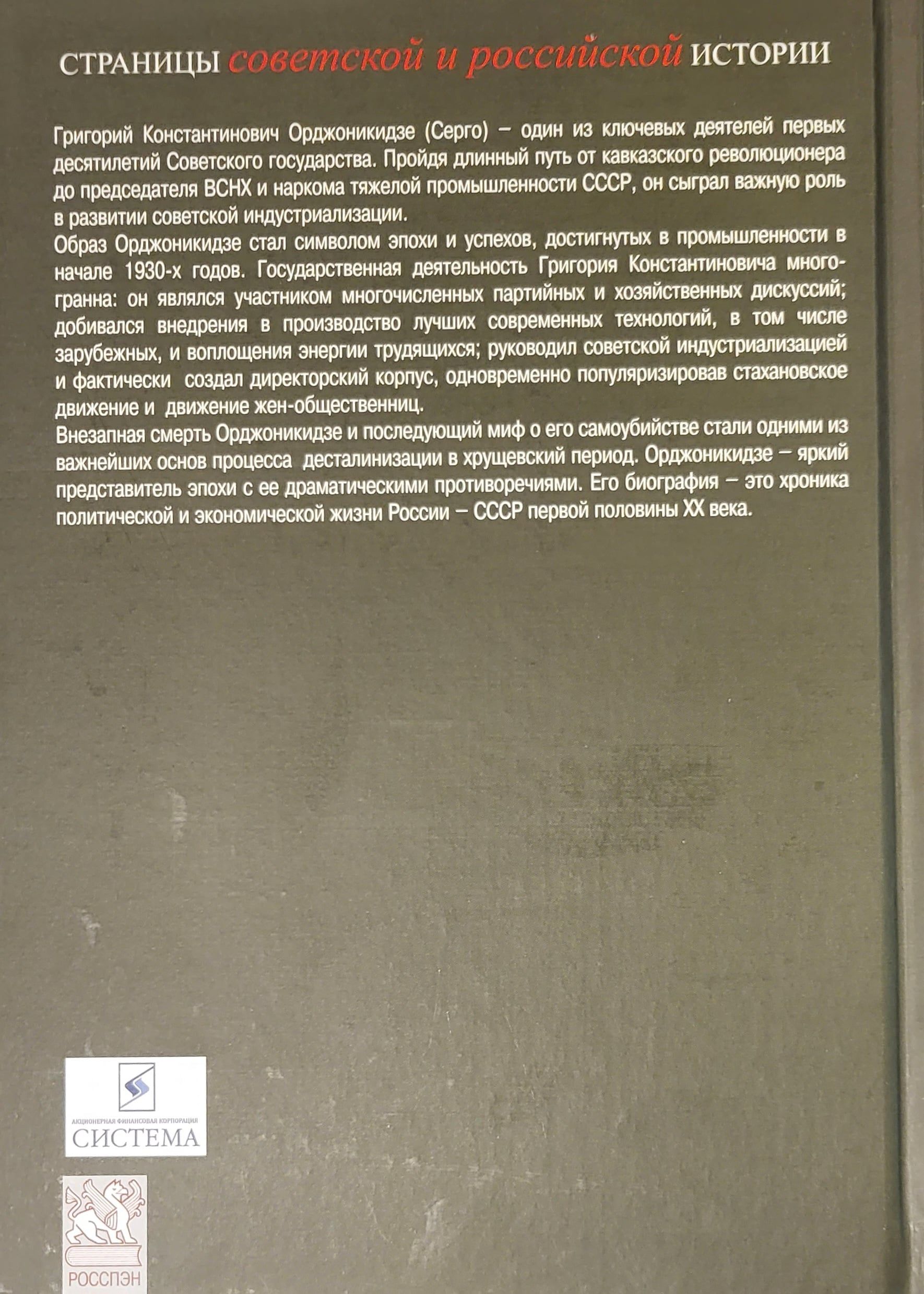 Григорий Константинович Орджоникидзе (Серго) – один из ключевых деятелей первых десятилетий Советского государства. Пройдя длинный путь от кавказского революционера до председателя ВСНХ и наркома тяжелой промышленности СССР, он сыграл важную роль в развитии советской индустриализации. Образ Орджоникидзе стал символом эпохи и успехов, достигнутых в промышленности в начале 1930-х годов. Государственная деятельность Григория Константиновича многогранна: он являлся участником многочисленных партийных и хозяйственных дискуссий; добивался внедрения в производство лучших современных технологий, в том числе зарубежных, и воплощения энергии трудящихся; руководил советской индустриализацией и фактически создал директорский корпус, одновременно популяризировав стахановское движение и движениежен-общественниц. Внезапная смерть Орджоникидзе и возникновение мифа о его самоубийстве стали одними из важнейших основ процесса десталинизации в хрущевский период. Орджоникидзе – яркий представитель эпохи c ее драматическими противоречиями. Его биография – это хроника политической и экономической жизни России – СССР первой половины ХХ века.