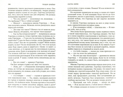 Опубликованный в 1900 году дебютный роман Драйзера вызвал грандиозный скандал — его называли безнравственным, безбожным, циничным и порочащим американскую мечту. Известный критик писал, что «хвалить этот роман едва ли не так же опасно, как стрелять в президента». Тем не менее «Сестру Керри» хвалят и любят вот уже более ста лет за его увлекательность и живость, за трогательную героиню, провинциалку Керри Мибер, приехавшую в огромный город Чикаго в поисках мечты...