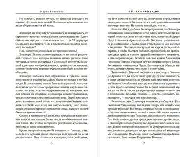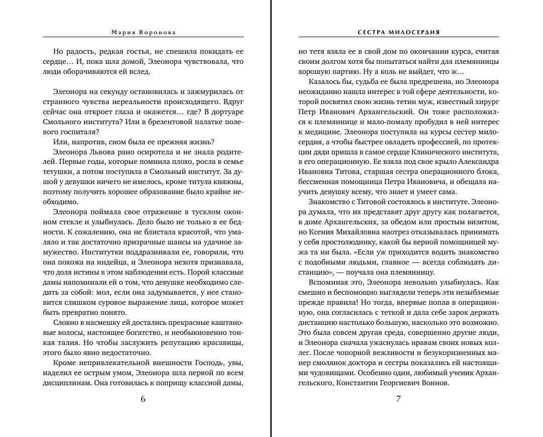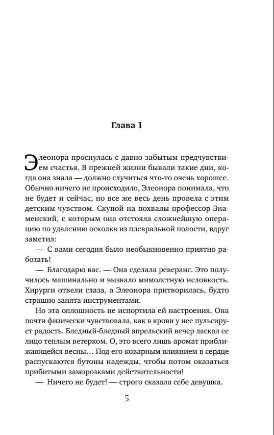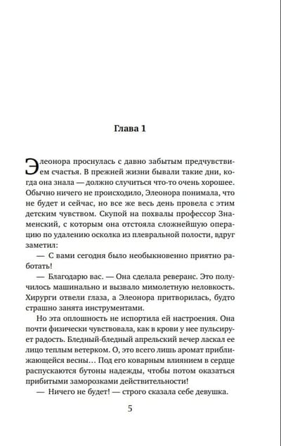Для того, чтобы обрести счастливую семью, недостаточно быть княжной – в этом Элеонора Львова успела убедиться в стенах Смольного института. Еще нужно быть красивой и богатой, чем эта серьезная и умная девушка похвастаться не может. А потому, не дожидаясь выпускного бала, она бросает Смольный и становится медицинской сестрой. На ее счету тысячи спасенных жизней. Но вот устроить свою жизнь у Элеоноры возможности нет – потому что она безответно влюблена в доктора Воинова, который идет служить в Красную Армию. А что может быть преступнее в глазах девушки «из благородных»?..