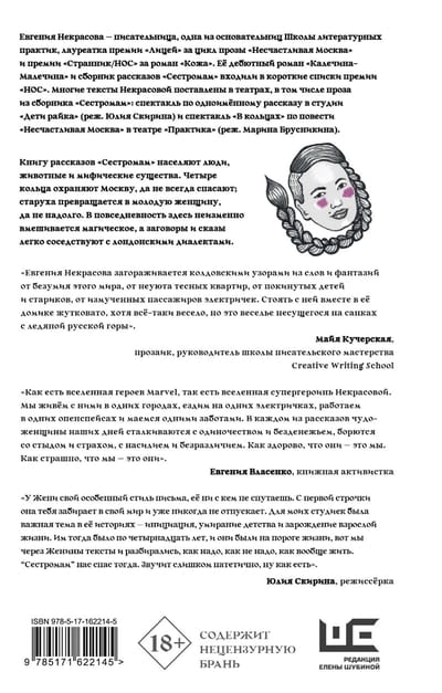 Книгу рассказов «Сестромам» населяют люди, животные и мифические существа. Четыре кольца охраняют Москву, да не всегда спасают; старуха превращается в молодую женщину, да ненадолго. В повседневность здесь неизменно вмешивается сказ, а заговоры и прибаутки легко соседствуют с лондонскими диалектами.
