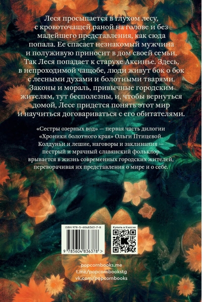 «Сестры озерных вод» — первая часть дилогии «Хроники болотного края» Ольги Птицевой. Колдуньи и лешие, наговоры и заклинания — пестрый и мрачный славянский фольклор врывается в жизнь современных городских жителей, переворачивая их представления о мире и о себе.