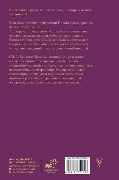 США, Канада и Мексика, возникшие в результате смешения множества народов и столкновения мощнейших европейских держав, до сих пор сохраняют наследие бывших метрополий. Но, при этом, идут собственным, сложным и тернистым путем, играя огромную роль как в современной политике, так и культуре, экономике и социальных процессах.