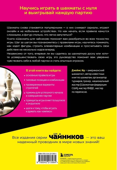 Книга «Шахматы для чайников» поможет вам разобраться во всех тонкостях игры. Шаг за шагом вы познакомитесь с правилами игры, научитесь понимать, как ходят фигуры, строить элементарные комбинации и просчитывать свои действия на несколько ходов вперед.