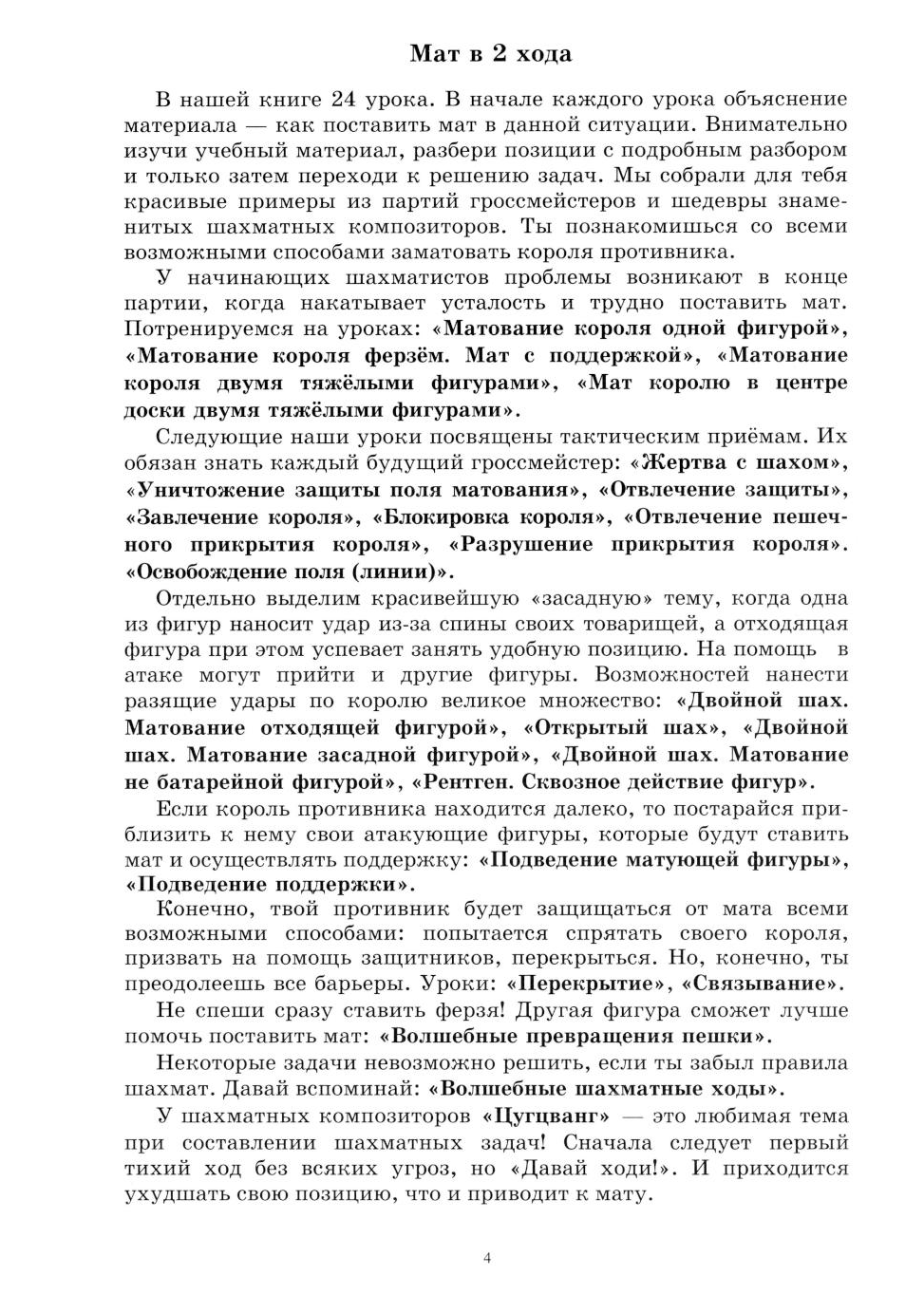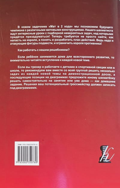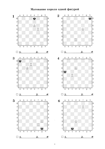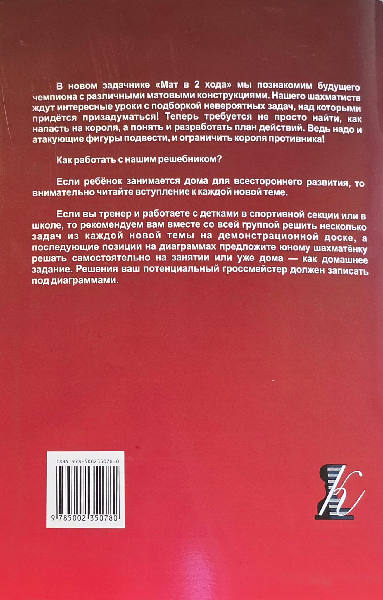 В новом задачнике «Мат в 2 хода» мы познакомим будущего чемпиона с различными матовыми конструкциями. Нашего шахматиста ждут интересные уроки с подборкой невероятных задач, над которыми придётся призадуматься! Теперь требуется не просто найти, как напасть на короля, а понять и разработать план действий. Ведь надо и атакующие фигуры подвести, и ограничить короля противника! Как работать с нашим решебником? Если ребёнок занимается дома для всестороннего развития, то внимательно читайте вступление к каждой новой теме. Если вы тренер и работаете с детками в спортивной секции или в школе, то рекомендуем вам вместе со всей группой решить несколько задач из каждой новой темы на демонстрационной доске, а последующие позиции на диаграммах предложите юному шахматёнку решать самостоятельно на занятии или уже дома - как домашнее задание. Решения ваш потенциальный гроссмейстер должен записать под диаграммами.