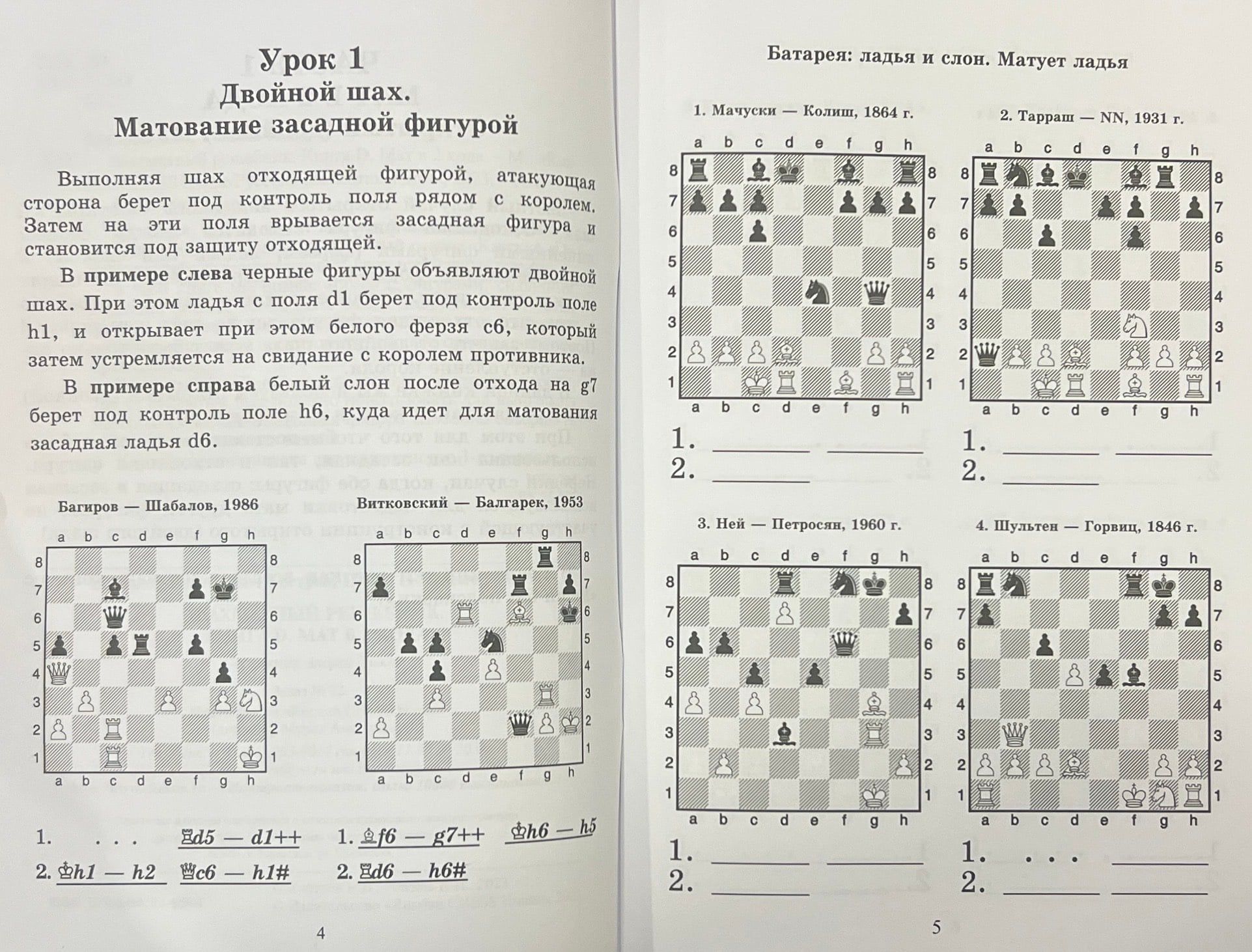 Надеемся, что ты достиг высокого шахматного уровня и возможно даже выполнил шахматный разряд. Книжка «‎D»‎ поможет тебе совершенствовать свои шахматные умения. Открытый (двойной) шах позволяет заматовать короля. Также открытый шах полезно использовать для выигрыша материала, так как отходящая фигура способна совершить опасное нападение или взятие.