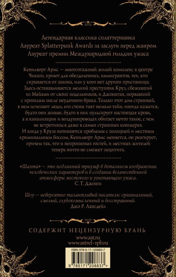 Признанная классика жанра сплаттерпанк. Для читателей со стальными нервами, фанатов творчества Клайва Баркера и Ричарда Лаймона. Гнетущий ужас, кровь, секс, пот и еще раз ужас на фоне Чикаго 80 х. Многоэтажный дом в центре Чикаго имеет две стороны: с одной, это пристанище для обездоленных, с другой — полный тайн дом убийца. Здесь обитают иммигранты, преступники и просто заблудшие души. Что привело этих бедолаг в дом с секретиком? И смогут ли они теперь из него выбраться?