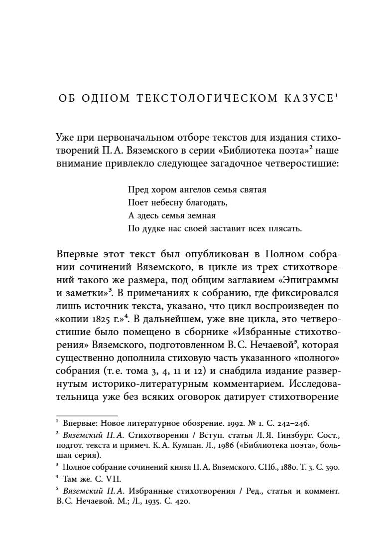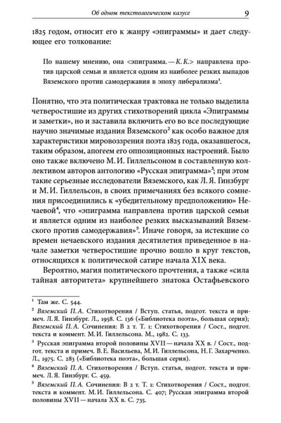 В книгу К. Кумпан — известного филолога, архивиста, текстолога, комментатора русской литературы начала XIX и XX веков, исследователя русской институциональной истории, — вошли избранные работы, публиковавшиеся в научных изданиях на протяжении почти полувека. Книга состоит из четырех частей: в первую входят статьи о творчестве П. А. Вяземского и Ф. В. Булгарина, во вторую — исследования и биографические материалы о А. А. Блоке, Д. С. Мережковском и Вяч. Иванове, посвященные разным периодам их творческой деятельности. Третий раздел книги знакомит читателя с историей различных отделений знаменитого Института Истории Искусств и трагедией разгрома этого уникального Петроградского научного и учебного заведения 1920 х — начала 1930 х годов. Книга завершается воспоминаниями К. Кумпан о годах обучения на историко-филологическом факультете Тартуского университета, о занятиях у Ю. М. Лотмана и работе в его знаменитом «Семинаре по быту Павловской эпохи».