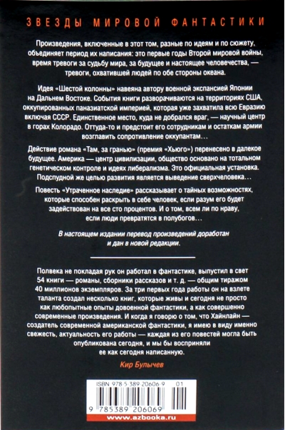 Повесть «Утраченное наследие» рассказывает о тайных возможностях, которые способен раскрыть в себе человек, если разум его будет задействован на все сто процентов. И о том, всем ли по нраву, если люди превратятся в полубогов…