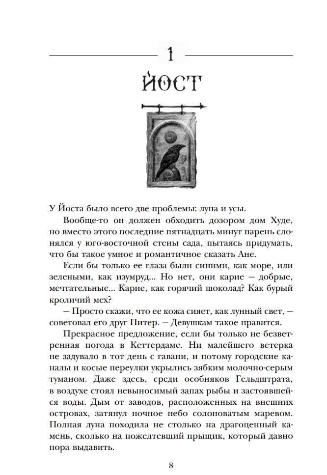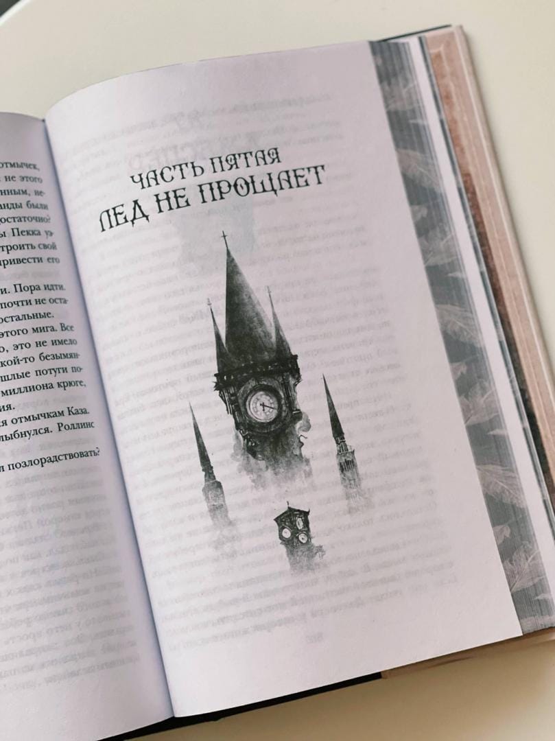Каз Бреккер никогда не снимает черных перчаток. Но, если не хочешь стать ужином для акул, не спрашивай его, почему. Никому не известно, где его семья, откуда он пришел и почему остался в Кеттердаме. Зато он знает обо всех и все. Бреккер — правая рука главаря одной из самых влиятельных банд в городе. Казино, бордели, нелегальная торговля — его стихия. А еще шантаж, грабеж и, если понадобится, хладнокровное убийство. Но все это мелочи по сравнению с новым заказом. На кону — баснословные деньги и… секрет, который может уничтожить одни народы и возвеличить другие. Какие именно — теперь зависит от Каза и его команды. Шестерых «воронов», которым нечего терять кроме надежды. Это дело объединит их. Лучшего стрелка банды Отбросов и новичка, который не умеет держать пистолет в руках. Соблазнительную чародейку, умеющую с помощью магии взрывать сердца, и безжалостного охотника на таких, как она.  Юную гимнастку из самого известного публичного дома во всей Керчии и Каза Бреккера, способного без тени сомнения вырвать глаз предателю.  Им предстоит один путь, но у каждого своя цель…