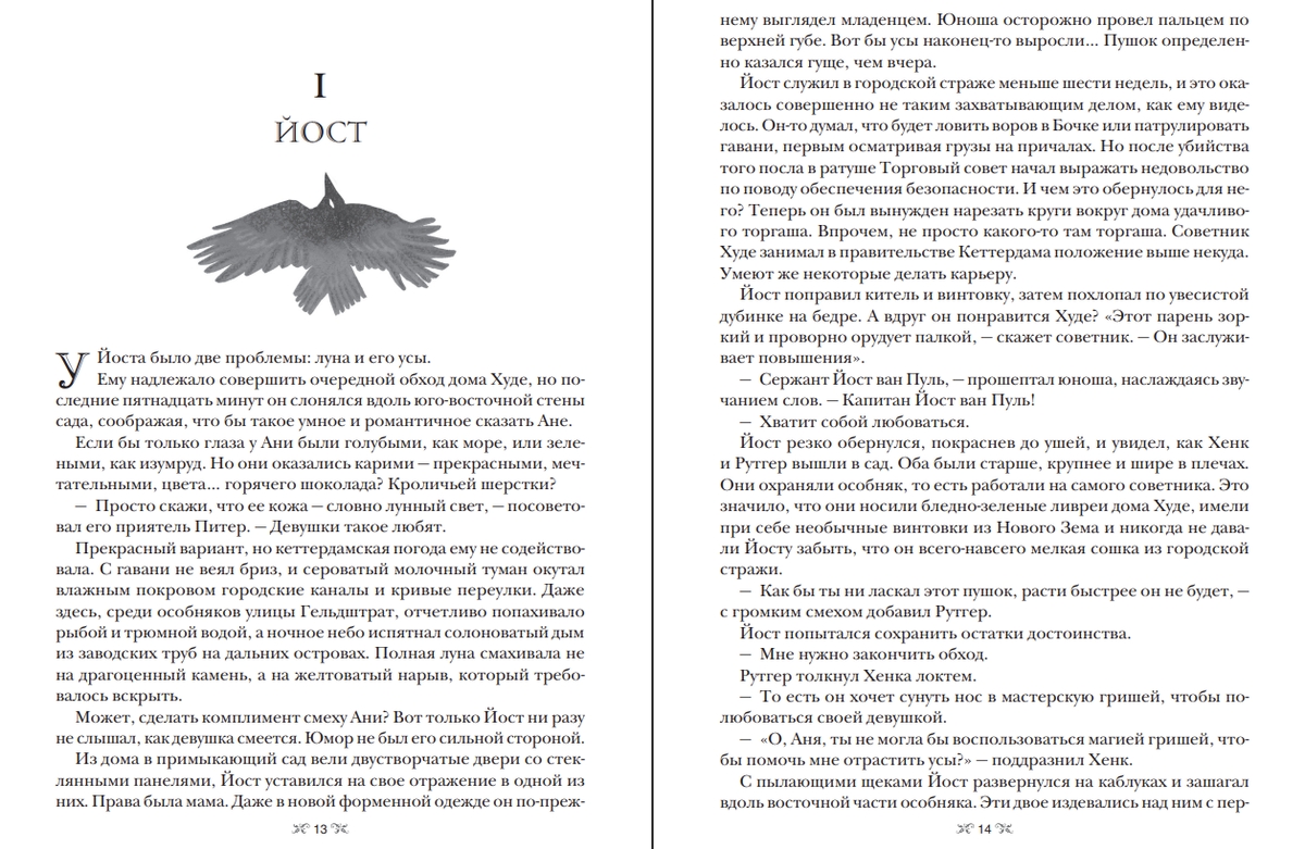 Шестерых «воронов», которым нечего терять кроме надежды. Это дело объединит их. Лучшего стрелка банды Отбросов и новичка, который не умеет держать пистолет в руках. Соблазнительную чародейку, умеющую с помощью магии взрывать сердца, и безжалостного охотника на таких, как она. Юную гимнастку из самого известного публичного дома во всей Керчии и Каза Бреккера, способного без тени сомнения вырвать глаз предателю. Им предстоит один путь, но у каждого своя цель...