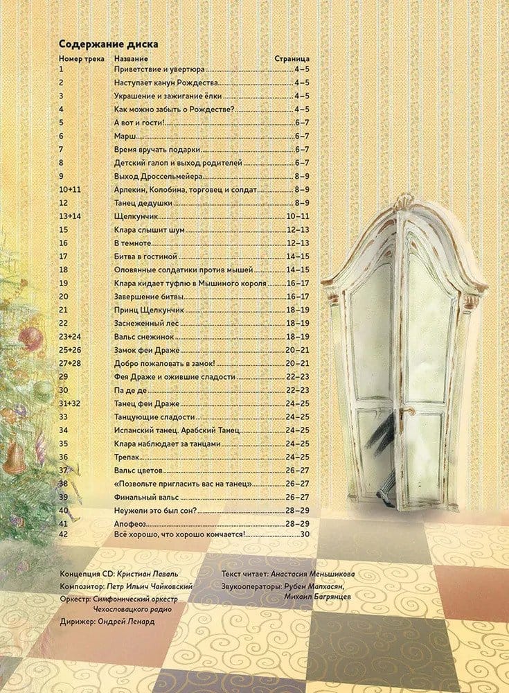 Чарующие звуки музыки и сказочный мир на страницах детских книг! Представляем коллекцию, которая не оставит равнодушным ни одного взрослого или юного читателя! В книгах этой серии вас ждет уникальное сочетание: либретто известнейших шедевров мировой музыкальной классики, адаптированные для детей дошкольного и младшего школьного возраста, дополненные диском с мелодиями из самих произведений и интересными комментариями. Текст читает Анастасия Меньшикова. Аудиотрек подготовлен при участии коллектива Московского драматического театра им. М. Н. Ермоловой. «Щелкунчик» – балет великого русского композитора Петра Ильича Чайковского на сказку Эрнста Гофмана, волшебная рождественская история о девочке с добрым сердцем, спасшей от злых чар и мышиного войска Принца, обращенного в деревянную игрушку.