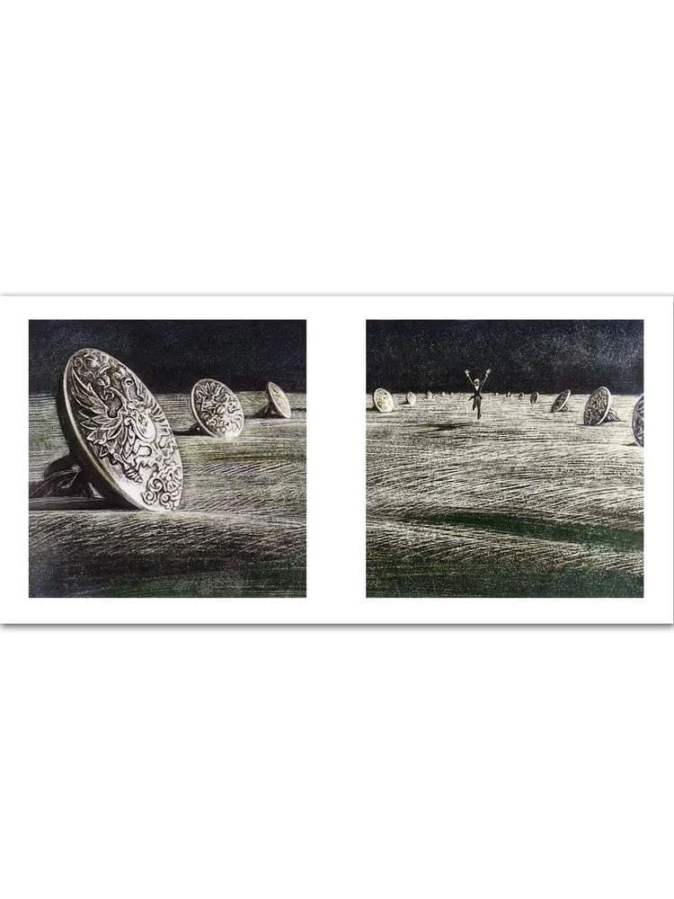 Повесть «Шинель» — одно из лучших творений Гоголя, из которого вышла если не вся русская литература, то многое в ней, — иллюстрировали многие художники. Савве Бродскому, работавшему над «Шинелью» в 1978–1981 годах, особенно удалась изобразительная метафора. Земля, затянутая в серое шинельное сукно; холодное петербургское небо, провисающее полами всё той же шинели; фигура маленького одинокого человека, метущегося в огромном враждебном городе… Оттолкнувшись от конкретных гоголевских образов, переосмыслив их, художник показал породившее их историческое время. Шинель у Бродского — не «светлый гость… ожививший на миг бедную жизнь» мелкого чиновника, а символ всего николаевского времени.
