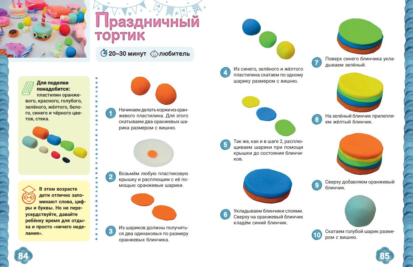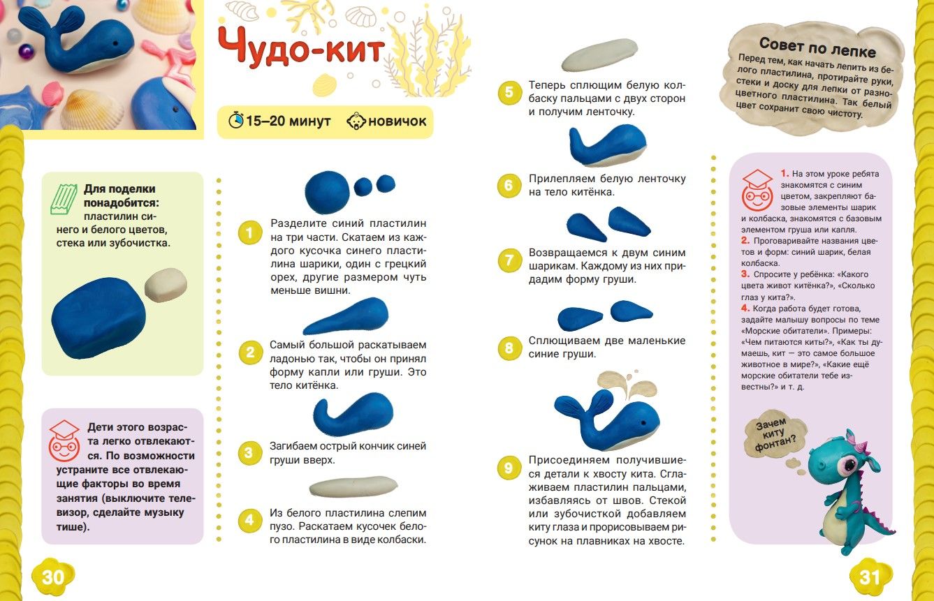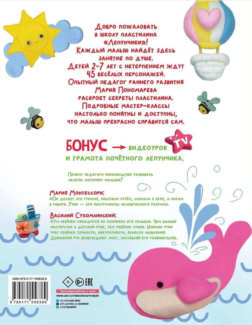 Что может быть полезнее пластилина?! Все специалисты говорят о том, что занятия лепкой развивают мелкую моторику, речь, мышление, воображение, улучшаются внимание и память детей. В этой книге Мария Пономарева подготовила 45 увлекательных занятий, которые не только подарят прекрасный совместный досуг, но и помогут развить важные умения и навыки. Все занятия сопровождаются указанием на уровень сложности, рекомендуемое время выполнения, а также содержат подсказки по лепке и организации общения с малышом. Подробные мастер-классы и оригинальные, красочные поделки превращают книгу в ценный подарок для детей и родителей. В конце добавлен приятный бонус — видеоурок и диплом почётного лепунчика.