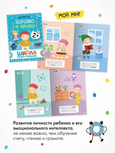 Система выстроена таким образом, чтобы ребенок получил необходимые знания в правильный момент. Поэтому все книги в Школе Семи Гномов имеют четкую возрастную адресацию и разработаны строго с учетом возрастных возможностей ребенка. Но самое важное, чтобы занятия с ребенком давали результат и приносили радость. Поэтому все задания выстроены от простого к сложному и следуют принципу «развитие через игру». Заниматься с ребенком может любой взрослый, специальных знаний и опыта не требуется. Родительская страничка в каждой книге подскажет, что, как и почему нужно развивать в данном возрасте.
