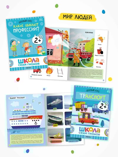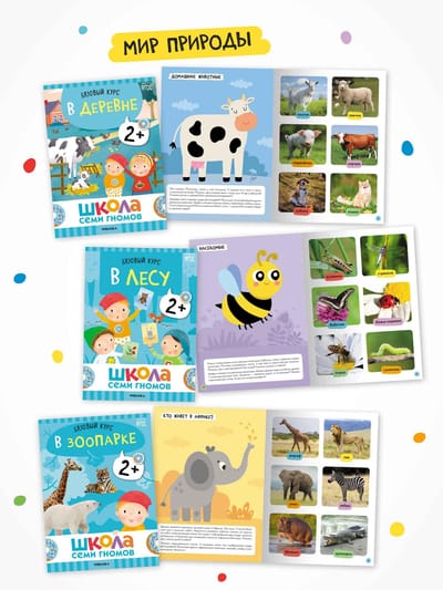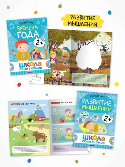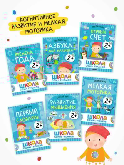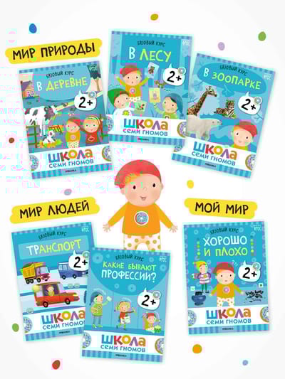 Школа Семи Гномов – это система, а не набор книг. Комплекс из 12 книг направлен на всестороннее развитие ребенка. 6 книг для развития когнитивных способностей: познавательный интерес, умение думать, анализировать, делать выводы. И еще 6 книг для на знакомства с окружающим миром, его закономерностями и взаимосвязями.