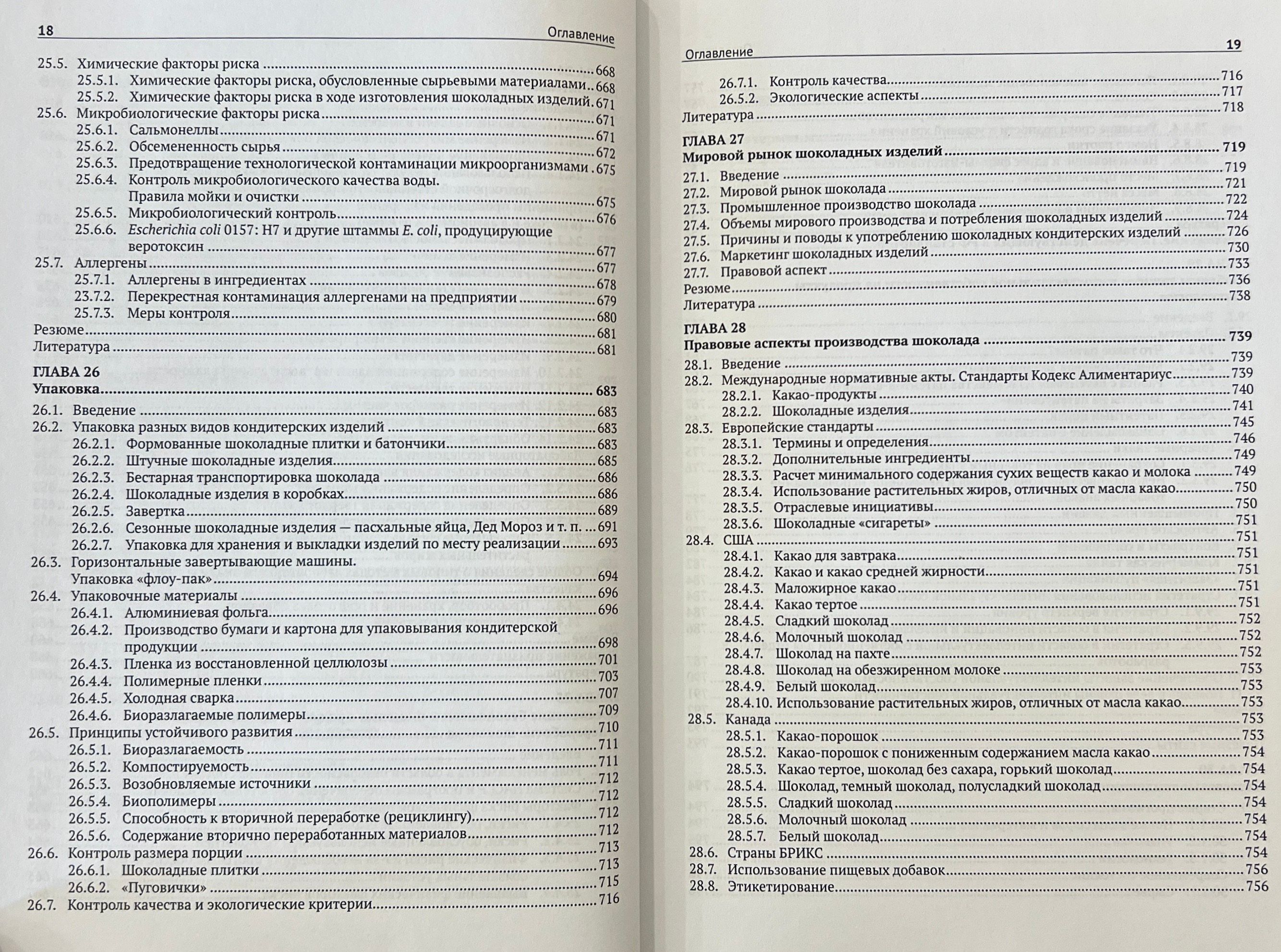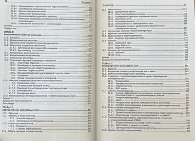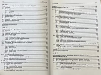 Последовательно рассматриваются сырье и ингредиенты, затем технологии и производство, потом рецептуры, далее вопросы безопасности и качества продукции, а в заключение — работа с потребителями и правовые аспекты производства шоколада.