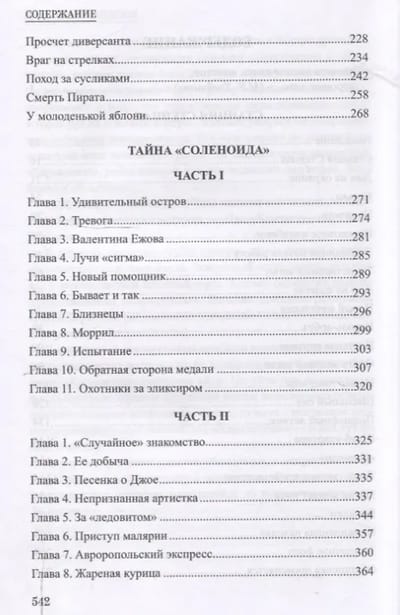 Роман «Тайна «Соленоида»» (1959) относится к лучшим образцам советской шпионской литературы. Наши ученые обнаруживают загадочный элемент, способный решить множество проблем: от лечения опасных болезней до применения его в народном хозяйстве. Заокеанские дельцы хотят прибрать к рукам плоды работы советских ученых. Готовится и забрасывается диверсионная группа, действующая согласно коварному многоходовому плану.