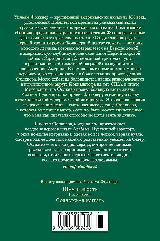 Уильям Фолкнер — крупнейший американский писатель ХХ века, удостоенный Нобелевской премии за уникальный вклад в развитие современного американского романа. В настоящем сборнике представлены ранние произведения Фолкнера, которые дают «ключ» к творчеству писателя.