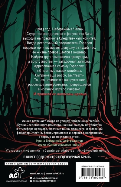 2013 год, Набережные Челны. Студентка юридического факультета Вика выходит на практику в Следственный комитет. Когда деспотичный следователь Горелов посреди ночи вызывает девушку в глухой лес, еe жизнь превращается в кошмар. Найден труп помощника прокурора, а во рту жертвы — загадочная записка, адресованная самому Горелову: «В память о ваших ошибках. Сыграем еще разок, Былтыр?»