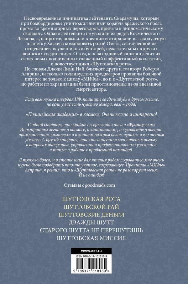 Несвоевременная инициатива лейтенанта Скарамуша, который при бомбардировке уничтожил личный корабль вражеского посла прямо во время мирных переговоров, привела к дипломатическому скандалу. Однако лейтенанта не уволили из рядов Космического Легиона, а, напротив, повысили в звании и отправили на захолустную планетку Хаскена командовать ротой Омега, составленной из отщепенцев, неудачников и бунтарей, нежелательных в других воинских соединениях. О том, как находчивый капитан лепит из своих новых подчиненных слаженный и эффективный коллектив, и повествует цикл «Шуттовская рота».