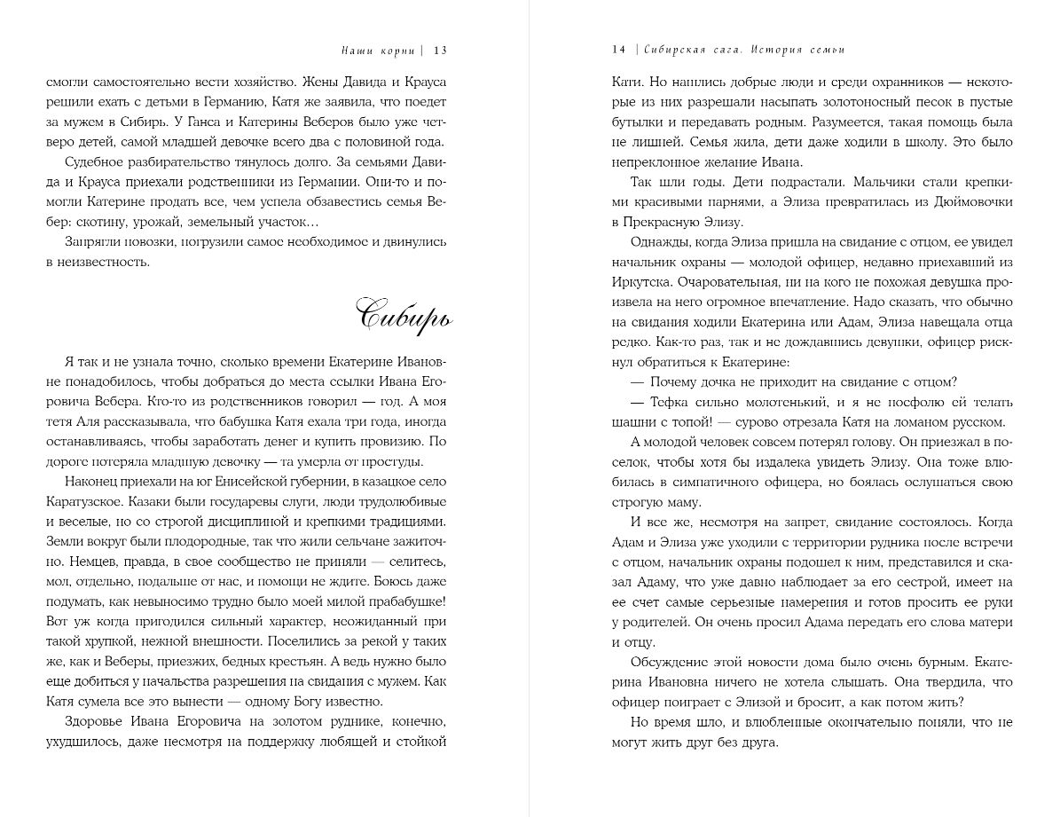 Сколько испытаний выпало на долю героев! Перемена мест – Германия, Поволжье, Сибирь, Киргизия и снова Сибирь; смешение кровей – немецких, русских, татарских, польских; масштабные исторические события – крах Российской империи, революция, Гражданская и две мировые войны… Перед нами – настоящая семейная сага, пестрая и яркая, протяженая во времени и пространстве.