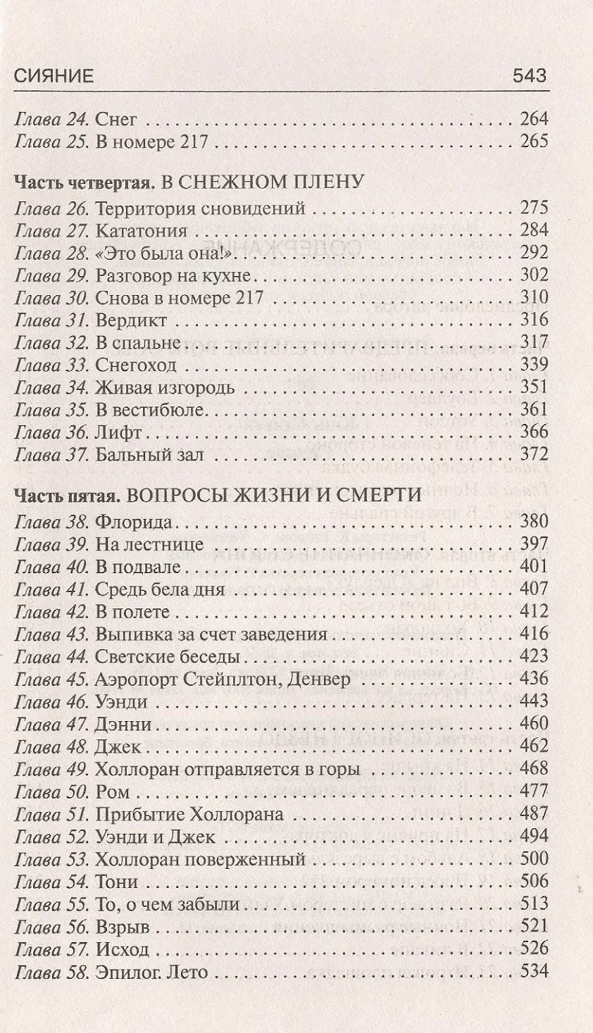 ...Проходят годы, десятилетия, но потрясающая история писателя Джека Торранса, его сынишки Дэнни, наделенного необычным даром, и поединка с темными силами, обитающими в роскошном отеле «Оверлук», по‑прежнему завораживает и держит в неослабевающем напряжении читателей самого разного возраста...