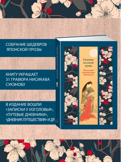 В настоящее издание вошли признанные шедевры японской лирической прозы: «Записки у изголовья» Сэй Сёнагон, «Дневник» Мурасаки Сикибу, «Путевые дневники» Мацуо Басё, фрагменты «Дневника летучей паутинки» Митицуна-но хаха, «Записки из беседки над прудом» Ёсисигэ-но Ясутанэ, «Дневник путешествия из Тоса в столицу» Ки-но Цураюки.