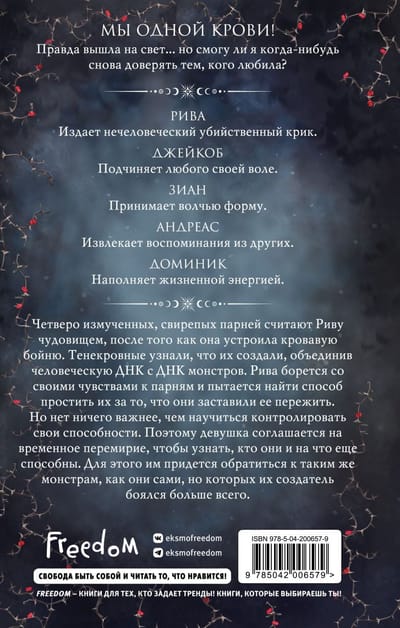 Но нет ничего важнее, чем научиться контролировать свои способности. Поэтому девушка соглашается на временное перемирие, чтобы узнать, кто они и на что еще способны. Для этого им придется обратиться к таким же монстрам, как они сами, но которых их создатель боялся больше всего.