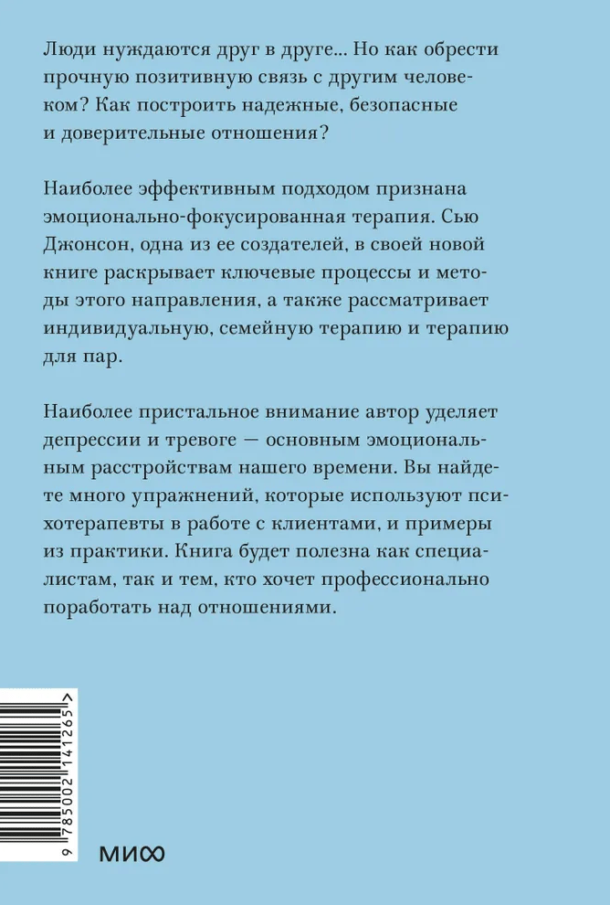 Наиболее эффективным подходом признана эмоционально-фокусированная терапия. Сью Джонсон, одна из ее создателей, в своей новой книге раскрывает ключевые процессы и методы этого направления, а также рассматривает индивидуальную, семейную терапию и терапию для пар.