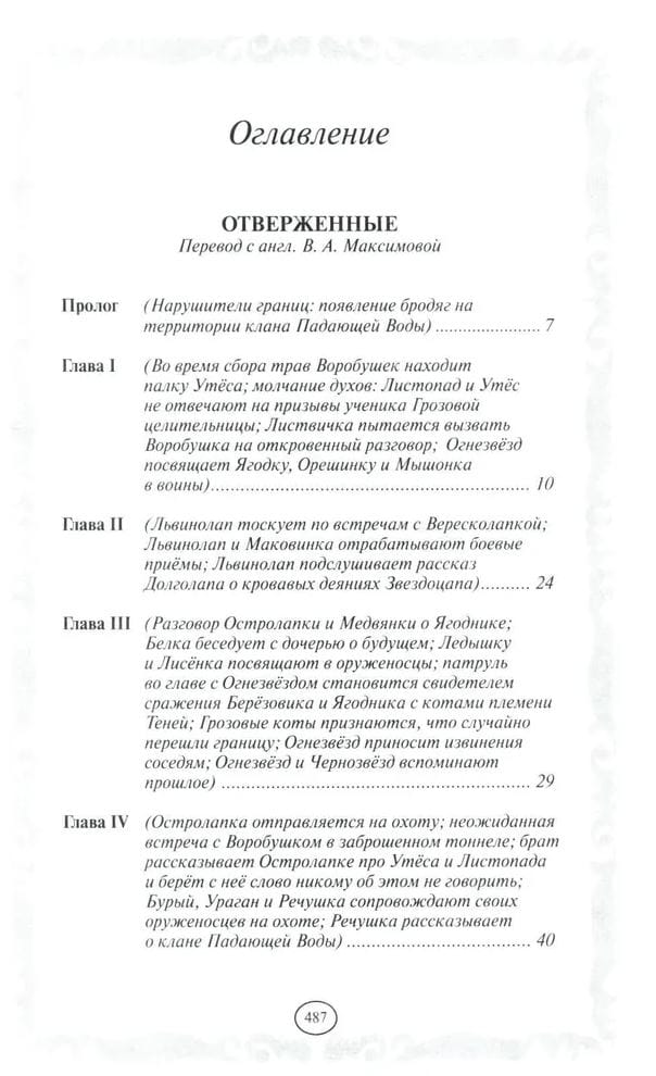 Пятнадцатая книга серии о котах-воителях «Отверженные» повествует о приключениях троих внуков Огнезвёзда. Их судьбы связывает таинственное пророчество, но лишь один из них — Воробушек — знает об этом. Он чувствует непреодолимое желание попасть в горы, где, как полагает ученик целительницы, ему удастся узнать не только о самом пророчестве, но и о том, что случилось с древними котами, когда-то жившими на берегах озера. Остролапке и Львинолапу тоже очень хочется увидеть мир, и когда с просьбой о помощи к Грозовым котам обращаются представители клана Падающей Воды, такая возможность им предоставляется. Коты отправляются в путешествие к далёким горам, даже не подозревая о том, насколько опасным окажется этот путь…