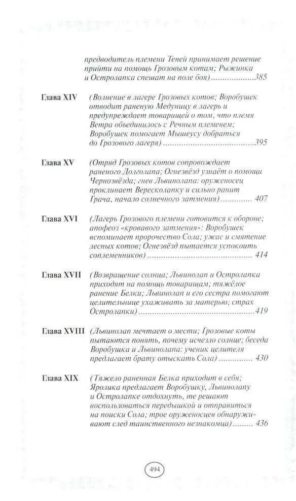 Шестнадцатая книга серии «Затмение» рассказывает о том, как на Остролапку, Львинолапа и Воробушка, пытающихся понять, что сулит им владение «силой звёзд», тяжёлой ношей ложится ответственность за будущее всех племён. Способности троих оруженосцев подвергаются испытанию, когда на Грозовых котов неожиданно нападают те, от кого они никак не могли этого ожидать. Все племена оказываются втянутыми в страшную битву. Над лесом сгущается тьма, а таинственный незнакомец предупреждает котов-воителей о грядущих опасностях. Кажется, впервые у Звёздного племени нет ответов на вопросы своих подопечных…