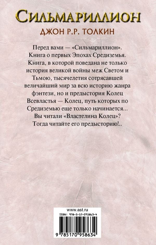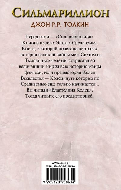 Книга о первых Эпохах Средиземья. Книга, в которой поведана не только история великой войны меж Светом и Тьмою, тысячелетия сотрясавшей величайший мир за всю история жанра фэнтези, но и предыстория Колец Всевластья - Колец, путь которых по Средиземью еще только начинается...