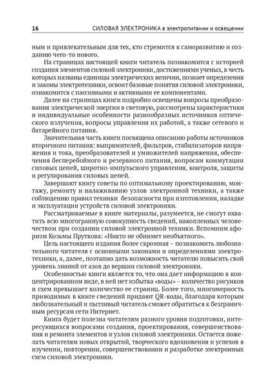Путешествуя по страницам книги, читатель пройдет путь от истоков, от рождения на свет отдельных элементов силовой электроники до создания узлов, блоков и сложных конструкций на их основе. Используя почерпнутые из книги знания, читатель сможет самостоятельно и последовательно, перешагивая ступеньку за ступенькой, своими руками собрать нужную ему по работе или в быту практическую конструкцию. Более того, можно на это надеяться, он сможет сам сконструировать и воплотить в жизнь оригинальные схемотехнические решения.