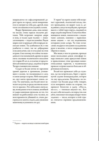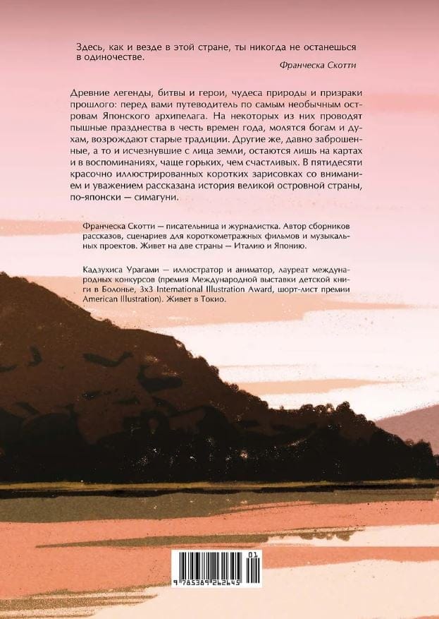 Согласно мифу, Япония родилась по воле богов из копья, погруженного в океан: стекшие с него комочки соли образовали первый остров. Бесчисленные уголки этого загадочного архипелага до сих пор хранят старинные легенды и невероятные истории. Глядя на красочные иллюстрации, вы совершите путешествие от заснеженного Хоккайдо до жаркой Окинавы через древние святилища, волшебные леса и заброшенные скалы. С этой книгой вы сможете лучше понять не только эту необыкновенную страну, но и самих себя.