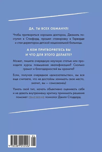 Доктор Джилл Стоддард выступает в TED, ведет подкаст, пишет успешные книги и все еще сомневается в собственной квалификации. Почему мы обесцениваем свои знания? Отчего достижения не приносят удовлетворение, а давят на нас, будто невыносимый груз вины? Как развеять сомнения и двигаться дальше без негативных установок? Для саморазвития, карьерного роста и ведения бизнеса важно успокоить тревоги внутреннего самозванца.