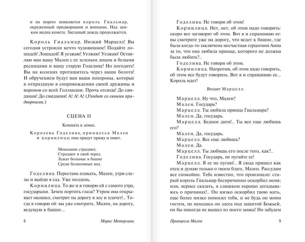 В пьесах «Принцесса Мален» и «Пелеас и Мелисанда» автор берет средневековые легенды куртуазного периода, тоже склонного к символическому абстрагированию от реальности, — однако под изысканным пером Метерлинка они обретают совершенно новые декадентские черты, и читатель завороженно восторгается глубиной стилизованных образов, поэзией высоких чувств и обреченных страстей, метафорической прелестью и элегантностью слова.